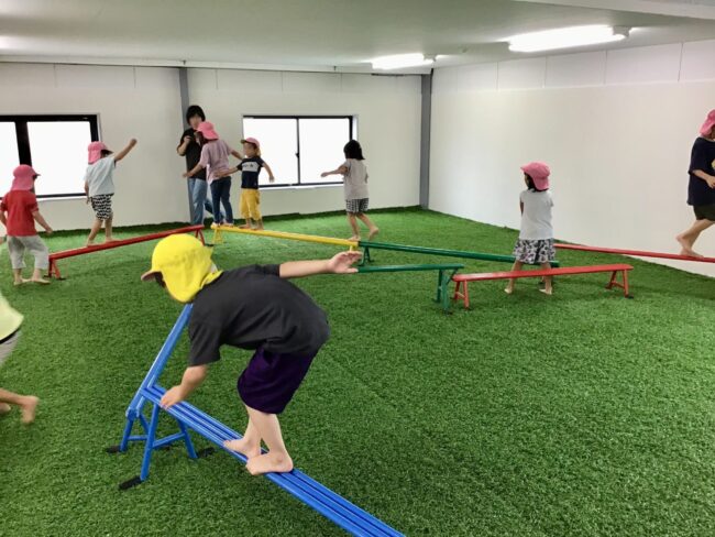 それだけにとどまらず、園向け・指導者向けの安田式研修や講習講演会の出張派遣、人工芝の設置など遊具を取り巻く環境の整備も事業として行っておられます。
